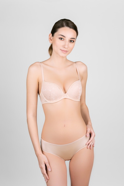 Бюстгальтер «пуш-ап» из эластичного трикотажного полотна и эластичного кружева. На каркасах. Жесткие формованные чашки